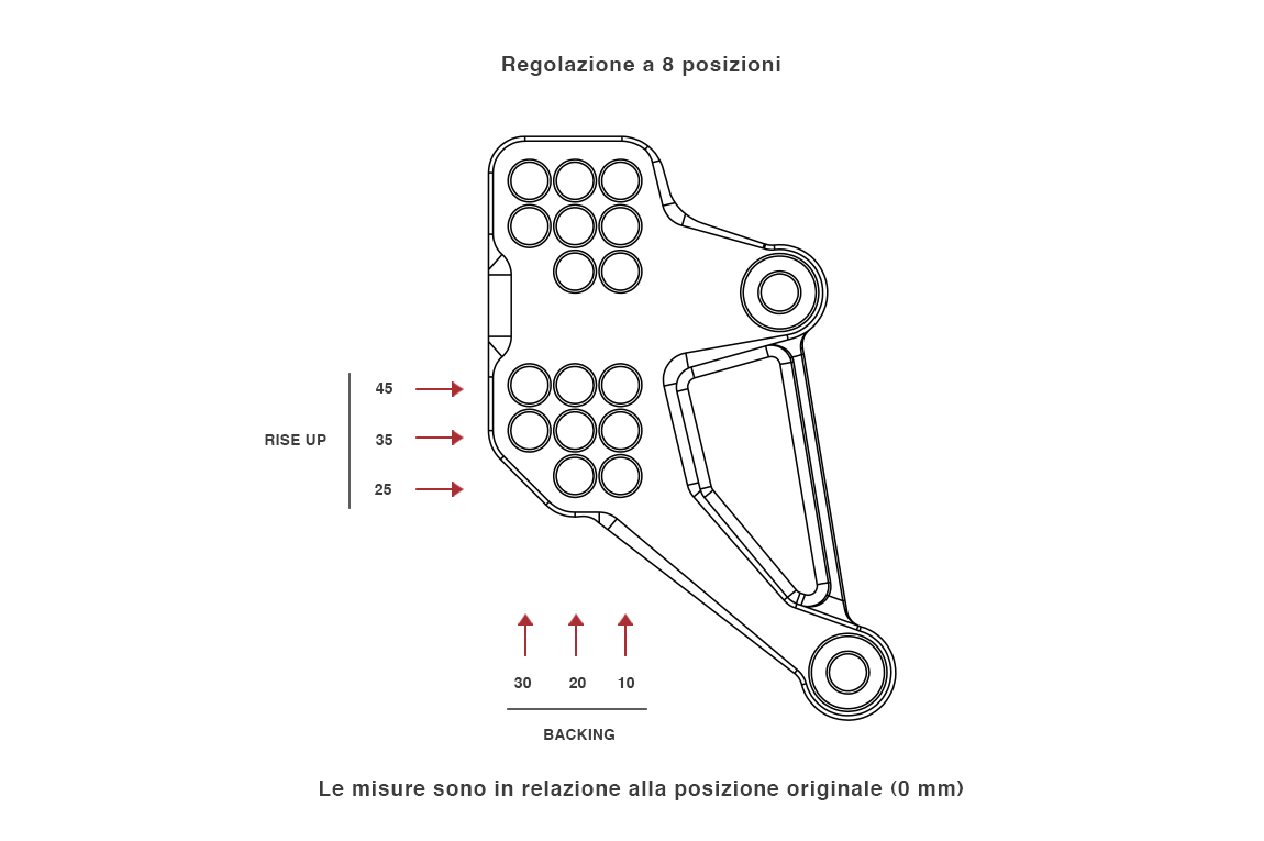 • Pedane realizzate dal pieno in leghe d’alluminio ad alta resistenza